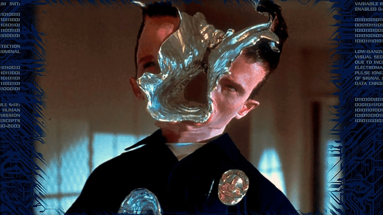 The specific technical problems T2 solved that The Terminator couldn't even attempt: The T-1000 is a liquid metal shape-shifting machine. It morphs between forms. It heals itself when damaged. It mimics specific people with photographic accuracy. It flows through solid surfaces. Every single one of those capabilities required digital technology that either didn't exist or hadn't been applied to a photorealistic character before 1991. The Terminator's effects were all photochemical and practical — camera angles, prosthetics, stop-motion, optical printing. T2's central effect was computational — the T-1000 exists as mathematics rendered into images by computers, composited into live action footage with a precision that made audiences genuinely unsure what they were seeing. The T-1000 is one of the most consequential VFX achievements in cinema history, so let's go a little deeper.