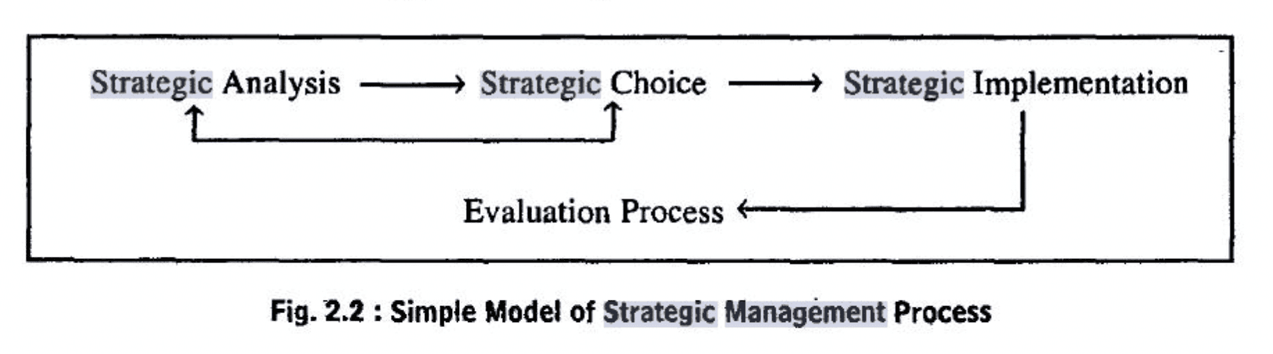 Though the process of strategic management starts with the step of performing an environmental analysis, carries on to the step of strategic control and it again begins with the environmental analysis. Thus, strategic management consists of a series of steps repeated cyclically.
